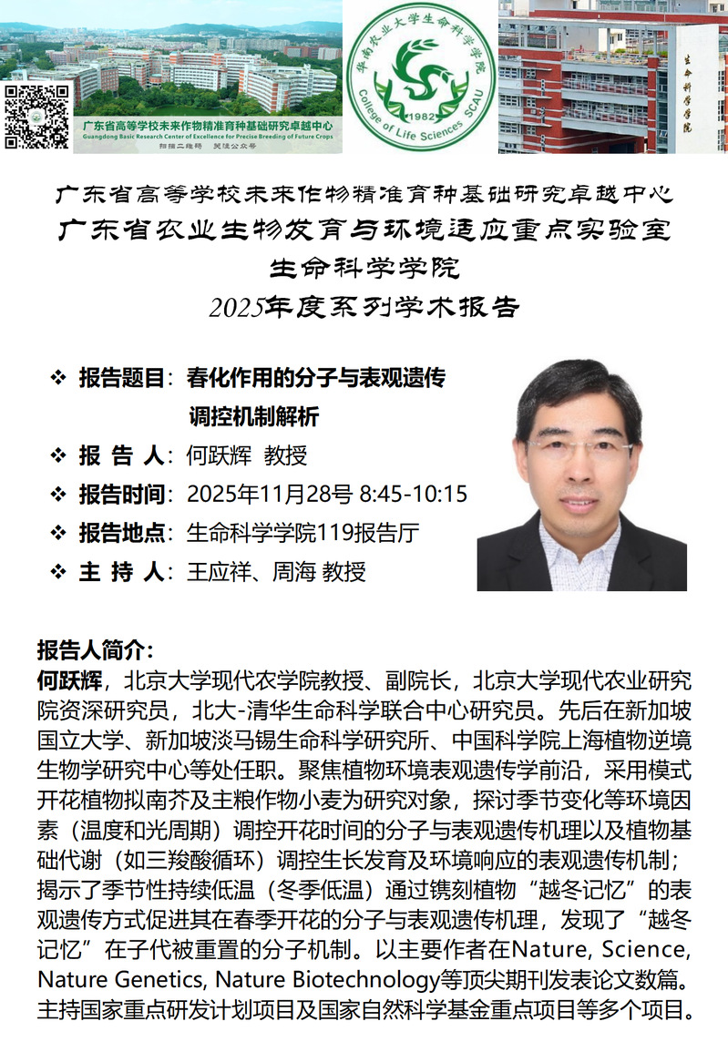 suncity太阳新城特邀报告——春化作用的分子与表观遗传调控机制解析