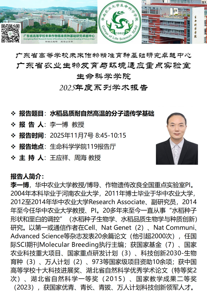 suncity太阳新城特邀报告——水稻品质耐自然高温的分子遗传学基础