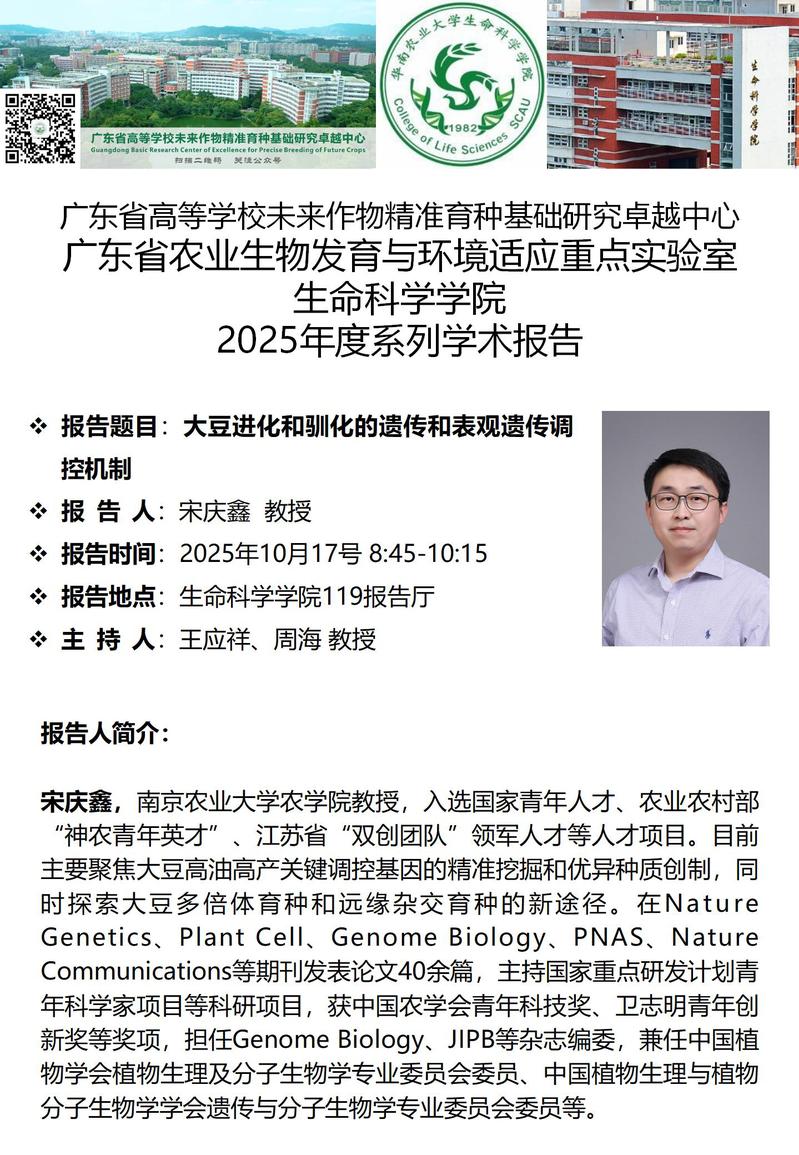 suncity太阳新城特邀报告——大豆进化和驯化的遗传和表观遗传调控机制