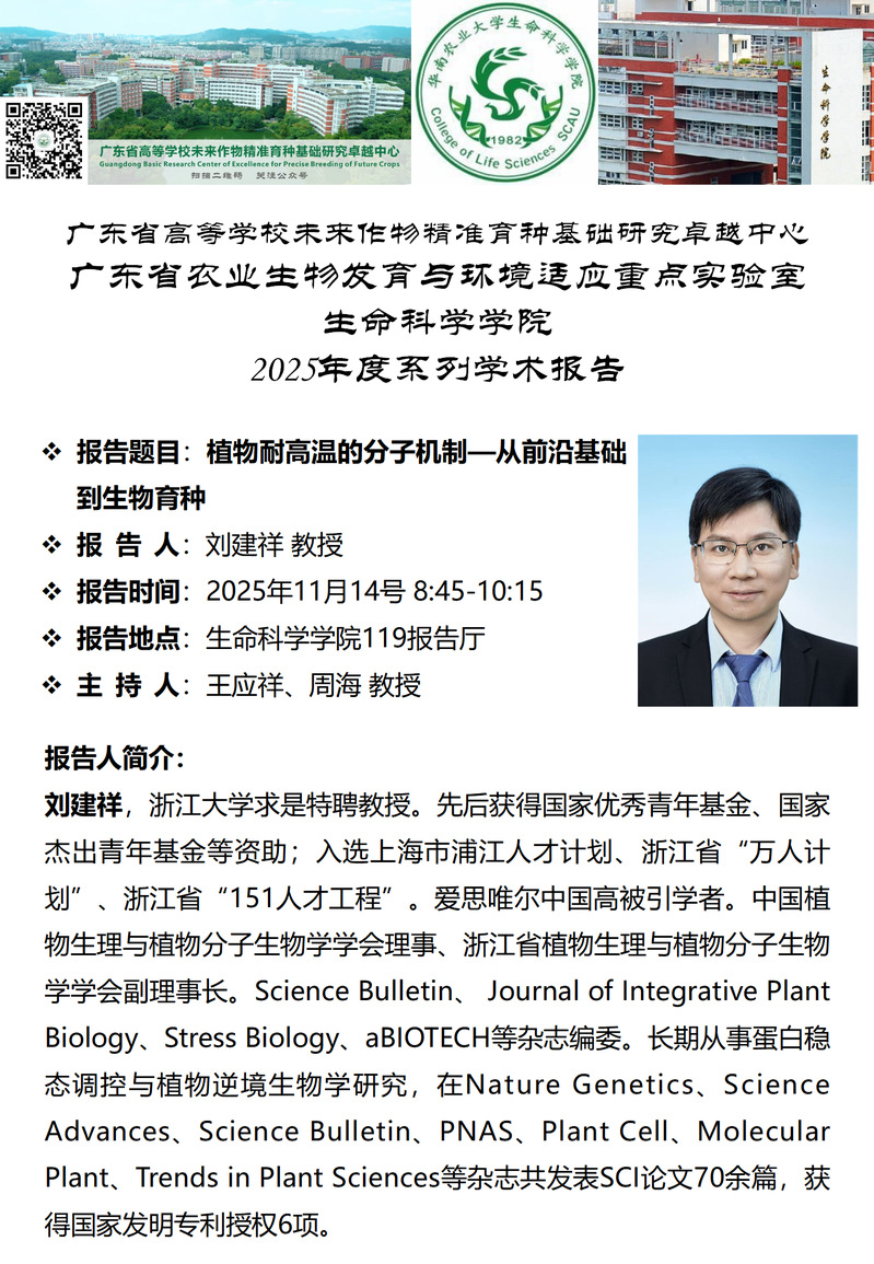 suncity太阳新城特邀报告——植物耐高温的分子机制—从前沿基础到生物育种