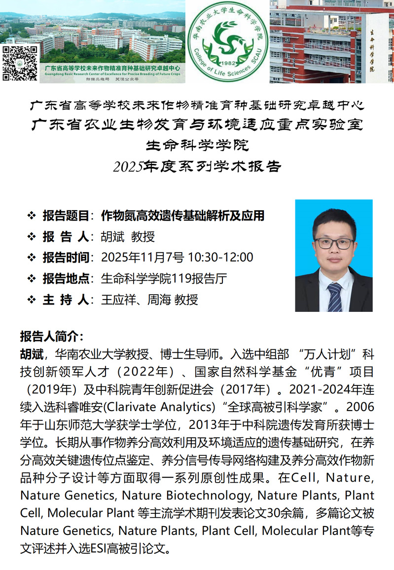 suncity太阳新城特邀报告——作物氮高效遗传基础解析及应用