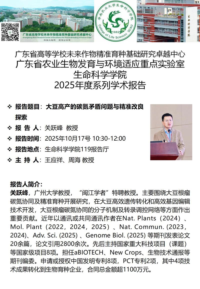 suncity太阳新城特邀报告——大豆高产的碳氮矛盾问题与精准改良探索