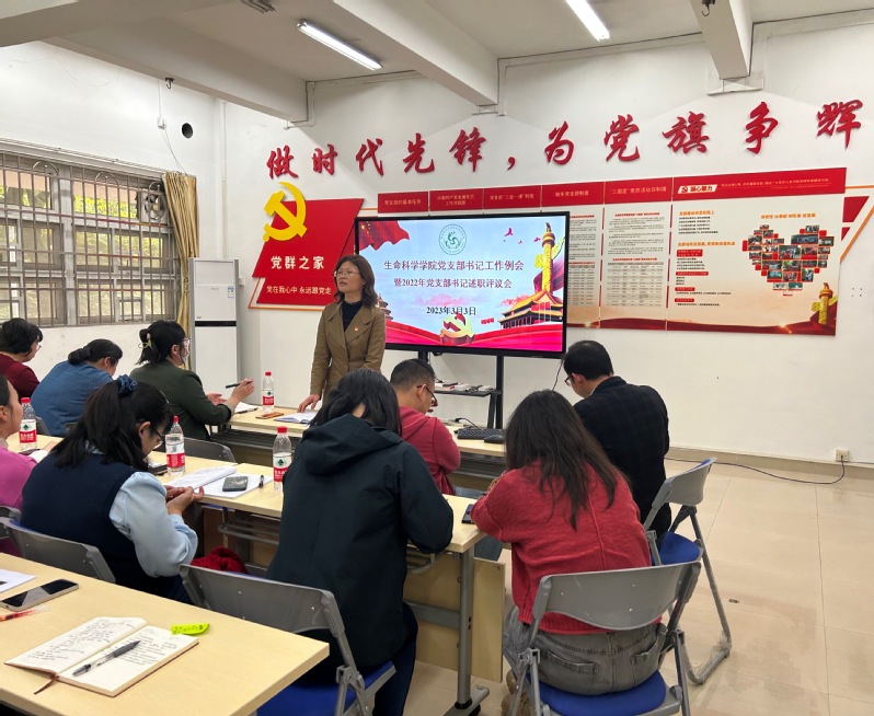 3月3日下午,suncity太阳新城党委在院楼南221党员活动室召开2022年党支部书记述职评议会暨3月份党支部书记工作例会。会议由党委书记吕剑红主持,党委副书记安娜出席,全体师生党支部书记、支委参加会议。