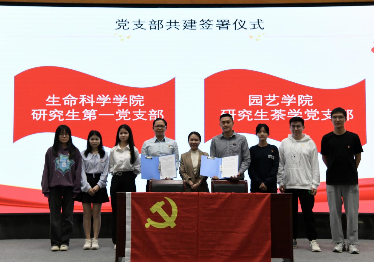 为深入学习贯彻党的二十大精神,坚持围绕中心、服务大局、对标争先、积极创优的理念,促进党建工作和科研创新,进一步提升党支部组织凝聚力和号召力,suncity太阳新城研究生第一党支部与园艺学院研究生茶学党支部于3月16日下午一同签署共建优秀党支部协议,两个支部共43名党员参加了共建交流活动。