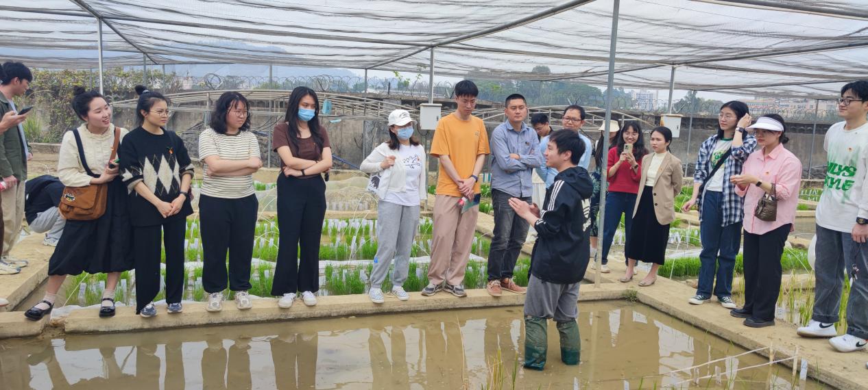 随后,党员同志共同参观了茶园基地和水稻基地。茶园基地由园艺研究生茶学党支部林楚源同志带领参观,介绍了茶树品种识别、茶叶形态特征、茶叶分子遗传机理等培育、生产知识,以及茶园管理和茶叶生产加工等茶学经营技能,不仅加深了园艺学院党员同志对茶学知识的了解,也拓宽了生科学院党员同志的知识领域。在启林北水稻基地,生科研究生第一党支部李铁同志介绍了水稻品种、水稻形态特征、生长适宜条件以及生长过程和田间管理等知识,并为党员同志现场展示了育秧插秧的具体流程。园艺研究生茶学党支部书记郑鹏同志表示,两个支部党员同志有着不同的专业背景和科研实践,在相互交流学习过程中对另一领域有了较为深入的认识和了解,就有可能激发出科研交叉的创新思路或科学启迪。