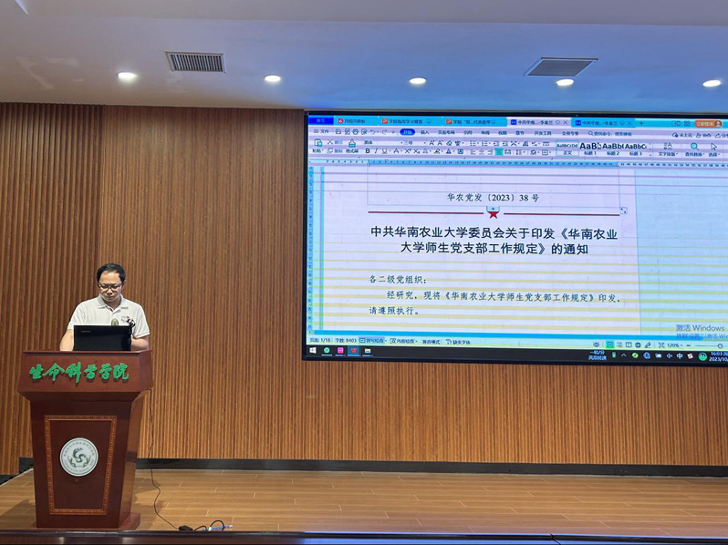 学院组织员梁春江带领与会人员集体学习《suncitygroup太阳官方网站师生党支部工作规定》和《学院(教学部)党委(党总支)党建工作评价指标体系》。
